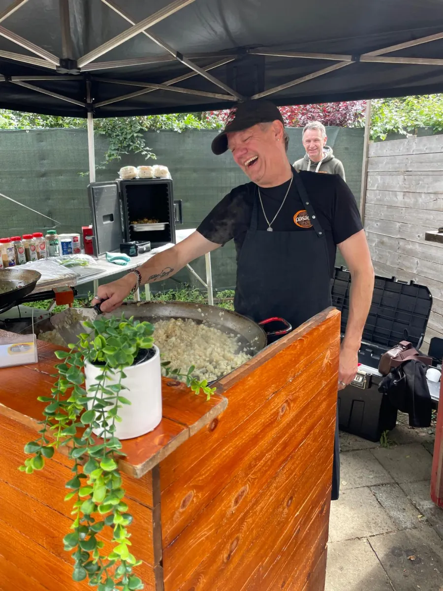 Naast het praktische gemak dat we bieden, creëren we een warme, gezellige en ongedwongen volkse sfeer. Iedereen verzamelt spontaan rond de pannen, genietend van een aperitief terwijl onze koks de gerechten live bereiden. Bij aankomst bouwen we onze toog op en bereiden we de gerechten in grote pannen. We hebben alleen water en minstens 15 m² ruimte nodig om er een smaakvolle beleving van te maken!